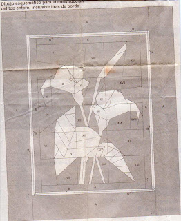 Lleva 146 piezas y no es fácil, mide 68x58 cm.,está cosido y acolchado a máquina