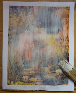 Recortar la foto imprimida tal como queréis que queda, con poco margen o ninguno, con un pincel le pintáis con una buena capa  por toda la superficie.